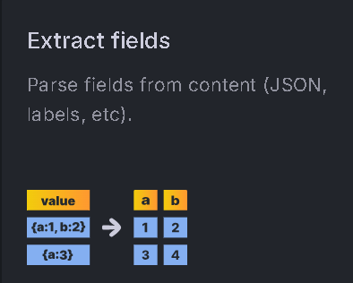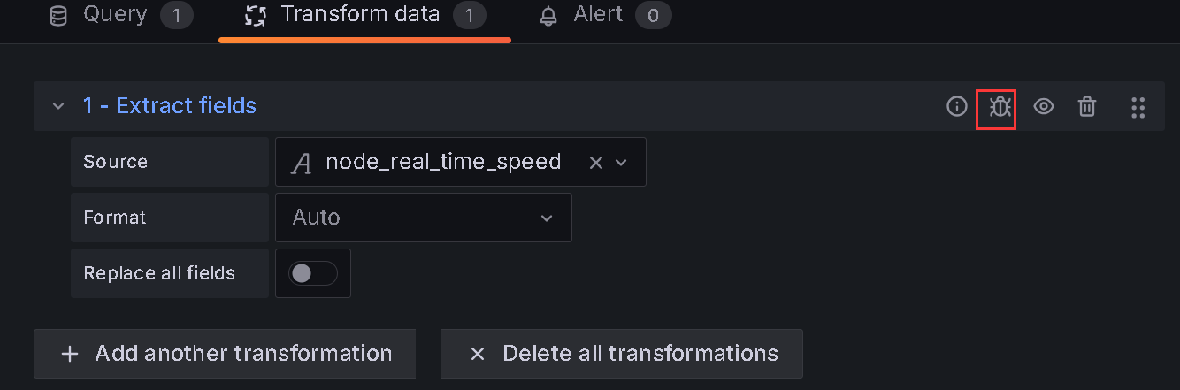 当前监控项是json格式,需要合并多个时间节点的数据并挑选出需要的数据,可以选择 Extract fields转换模式