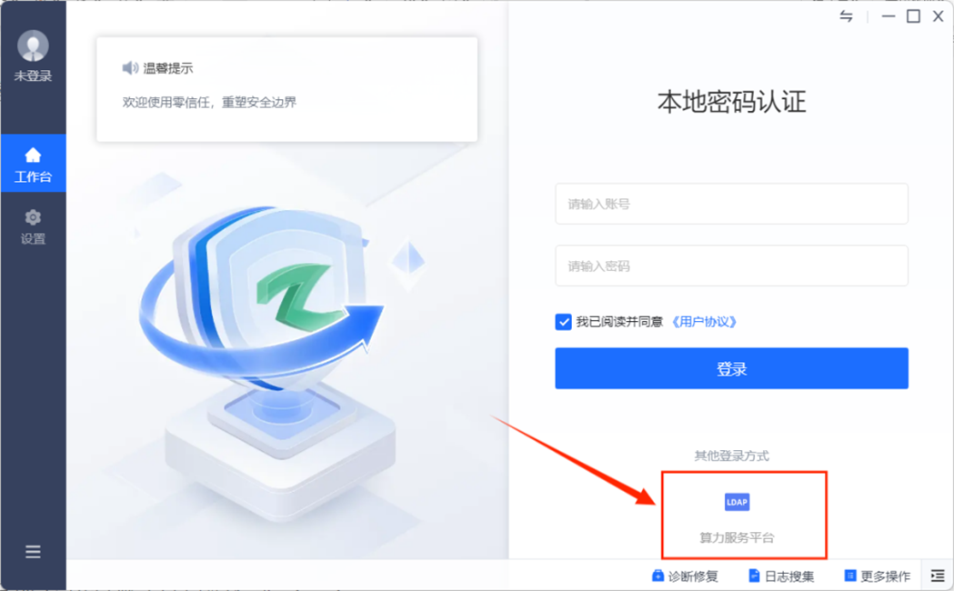 • 登录方式选择「算力服务平台」,使用「超算账号密码」登录即可