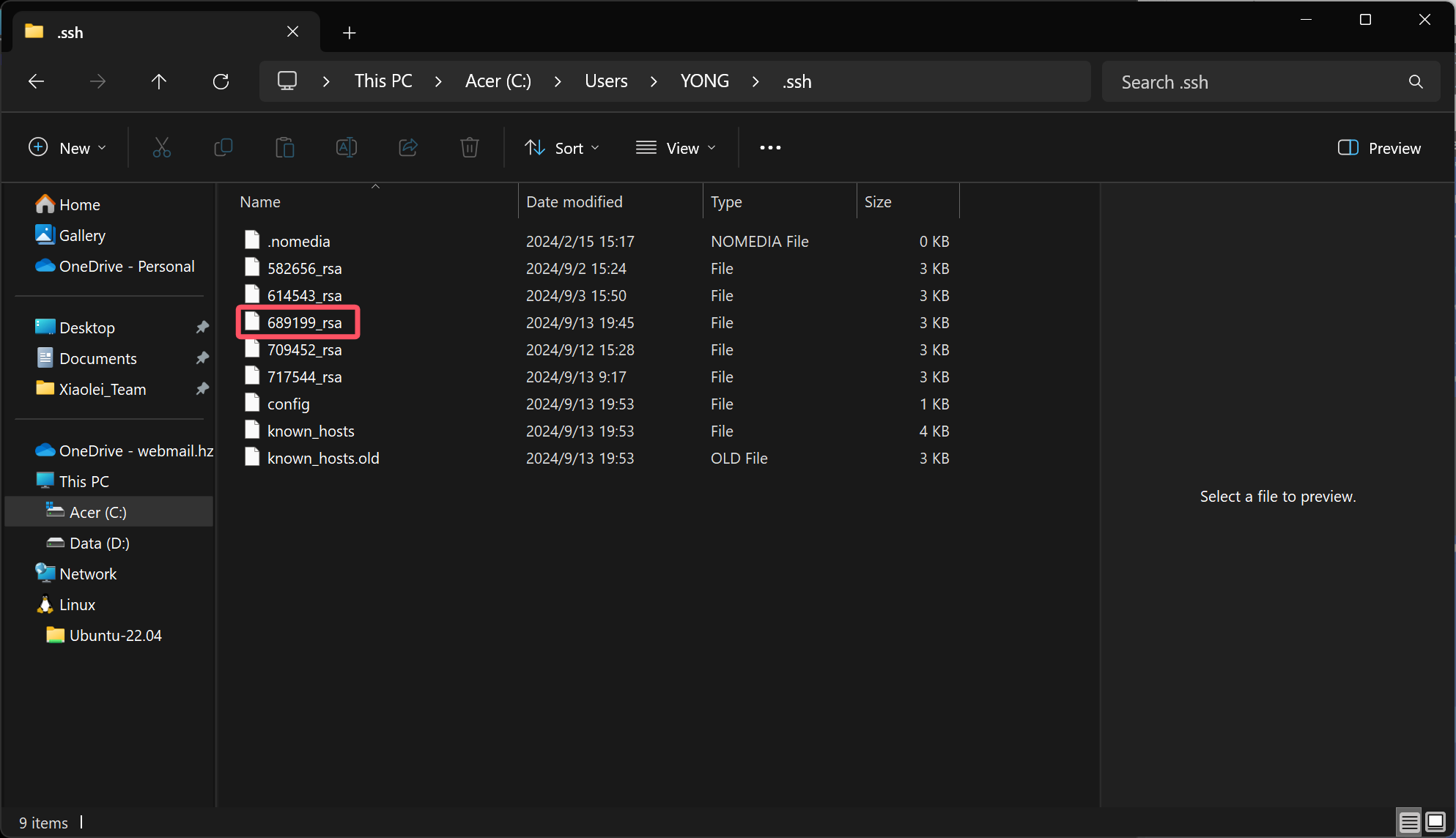 • 该示例登录密钥为689199_rsa,将该密钥另存到「C盘--用户--用户名--.ssh」文件夹中