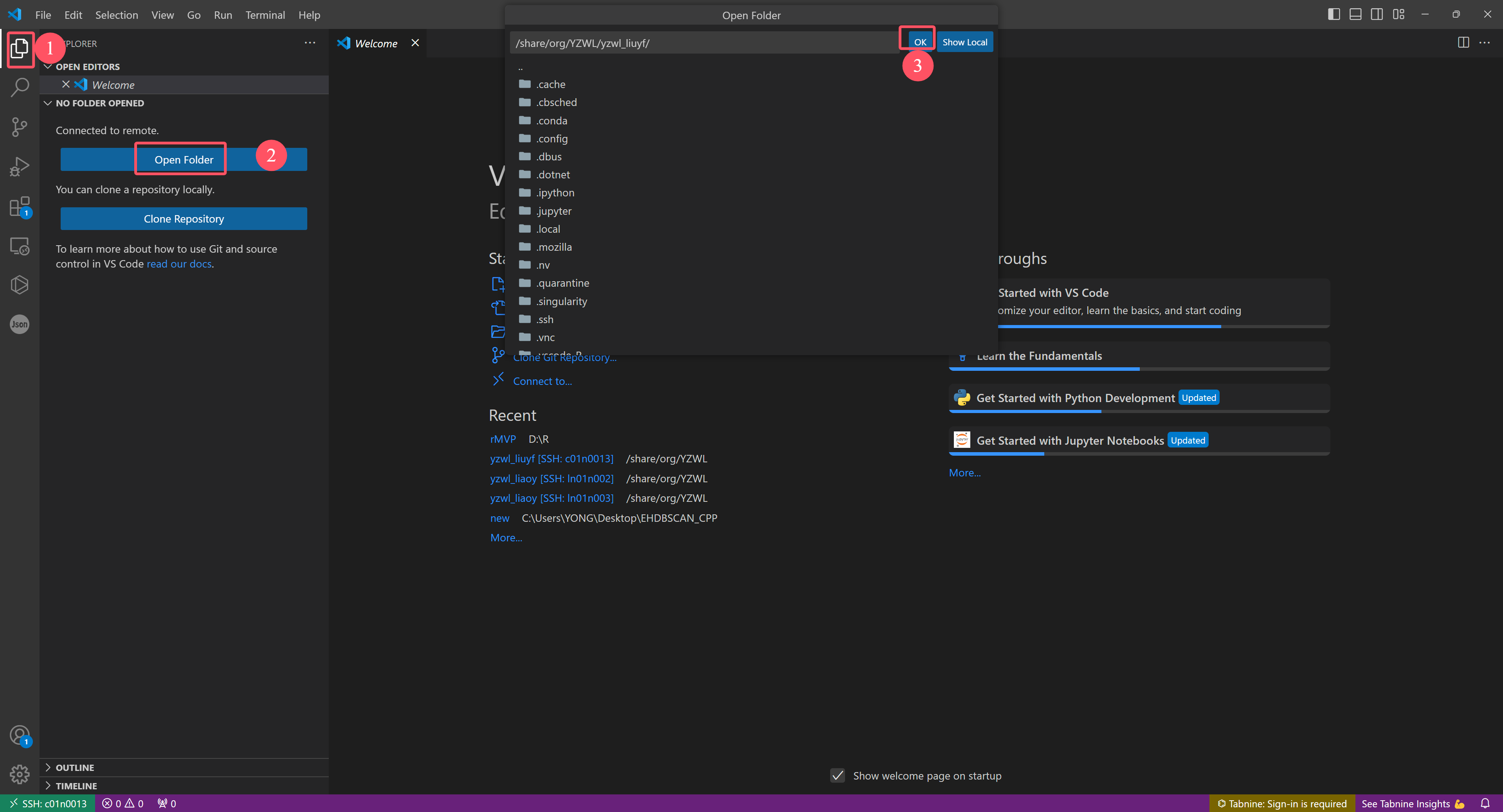 • SSH下方出现c01n0013,鼠标移到该处会出现→,点击箭头即可连接远程服务器